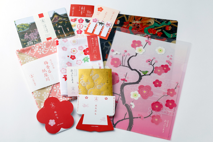 北野天満宮ゆかりの梅や紅葉、国宝「北野天神縁起絵巻」をデザインに取り入れた、 オリジナルのシールやクリアファイル、風呂敷など、日頃使えるアイテムが登場。 クリアファイルやふせん、シールといったステーショナリーは、 受験生へ縁起のよいプレゼントになりそうです。北野天満宮参拝の記念にいかがですか?